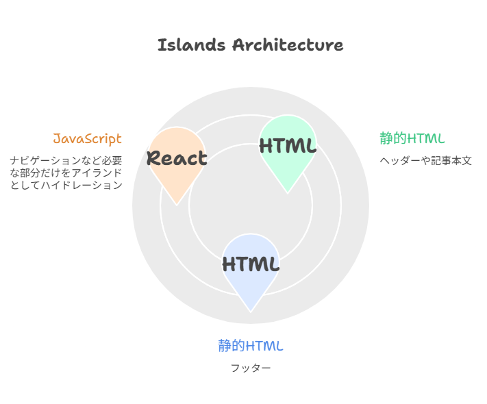 必要なパーツ(島)だけを動的にするこのアプローチは、パフォーマンスにおいて圧倒的な優位性を生みます。